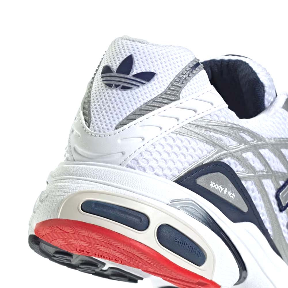 Az adidas Adistar Cushion Sporty & Rich USA egy retró futócipő inspirálta lifestyle modell, amely ötvözi a kényelmet, a modern technológiát és a Sporty & Rich letisztult esztétikáját. A fehér hálós felsőrész ezüst szintetikus részletekkel könnyű és jól szellőzik, miközben a piros–tengerészkék 3-csíkos dizájn karakteres, „USA” hangulatot ad a cipőnek. Az Adiprene középtalp puha párnázást biztosít a mindennapi viselethez, a gumi külső talp pedig stabil tapadást nyújt. Tökéletes választás azok számára, akik sportos, mégis divatos megjelenésre vágynak egy kényelmes, modern utcai cipőben.