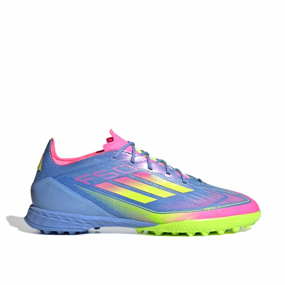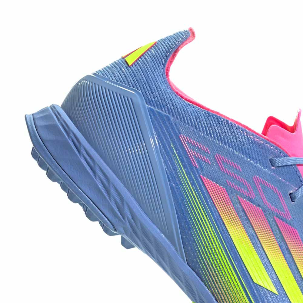 A Celestial Victory Pack színvilága friss, sportos megjelenést kölcsönöz a cipőnek, amely jól tükrözi az F50 sebességorientált karakterét. A világos és kontrasztos árnyalatok modern hatást keltenek, miközben megőrzik az Adizero vonal letisztult stílusát. A dizájn nem öncélú, minden részlete a gyors, hatékony játékot támogatja műfüves környezetben.