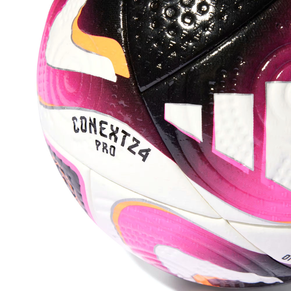 Az Adidas Conext 24 Pro IP1616 focilabdát a legmagasabb szintű mérkőzésminőségre tervezték, ahol a pontosság és a kiszámíthatóság kulcsfontosságú. A hőragasztott, varrás nélküli borítás rendkívül sima felületet biztosít, amely stabil repülési ívet és kiváló érintéskontrollt eredményez. A panelkialakítás modern, dinamikus grafikával párosul, így a labda nemcsak technológiai szempontból kiemelkedő, hanem vizuálisan is azonnal kitűnik a pályán. A konstrukció minimális vízfelvételt tesz lehetővé, így esőben, nedves füvön is kiegyensúlyozott teljesítményt nyújt.