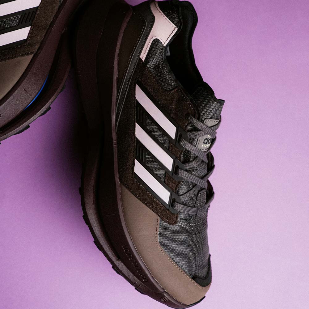 A cipő külső talpa eredetileg terepfutásra tervezett, nagy tapadású gumiból készült, így még nedves vagy egyenetlen felületen is biztos lépést garantál. A masszív, de rugalmas talpszerkezet kiváló ütéscsillapítást kínál, miközben a görgő formájú profil segíti a természetes gördülést saroktól lábujjig. Az Adidas minőség és technológia kombinációja hosszú élettartamot és stabil teljesítményt ígér.