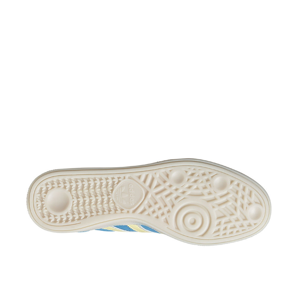 Az Adidas Handball Spezial Semi Blue Burst felsőrésze prémium minőségű kék velúrból készült, amely nemcsak elegáns megjelenést, hanem tartósságot is garantál. A sárga három csík és a gondosan kidolgozott részletek a klasszikus kézilabda cipő modern újraértelmezését nyújtják. Ez a modell a luxus és a letisztultság tökéletes kombinációja, amely minden outfitedet feldobja.