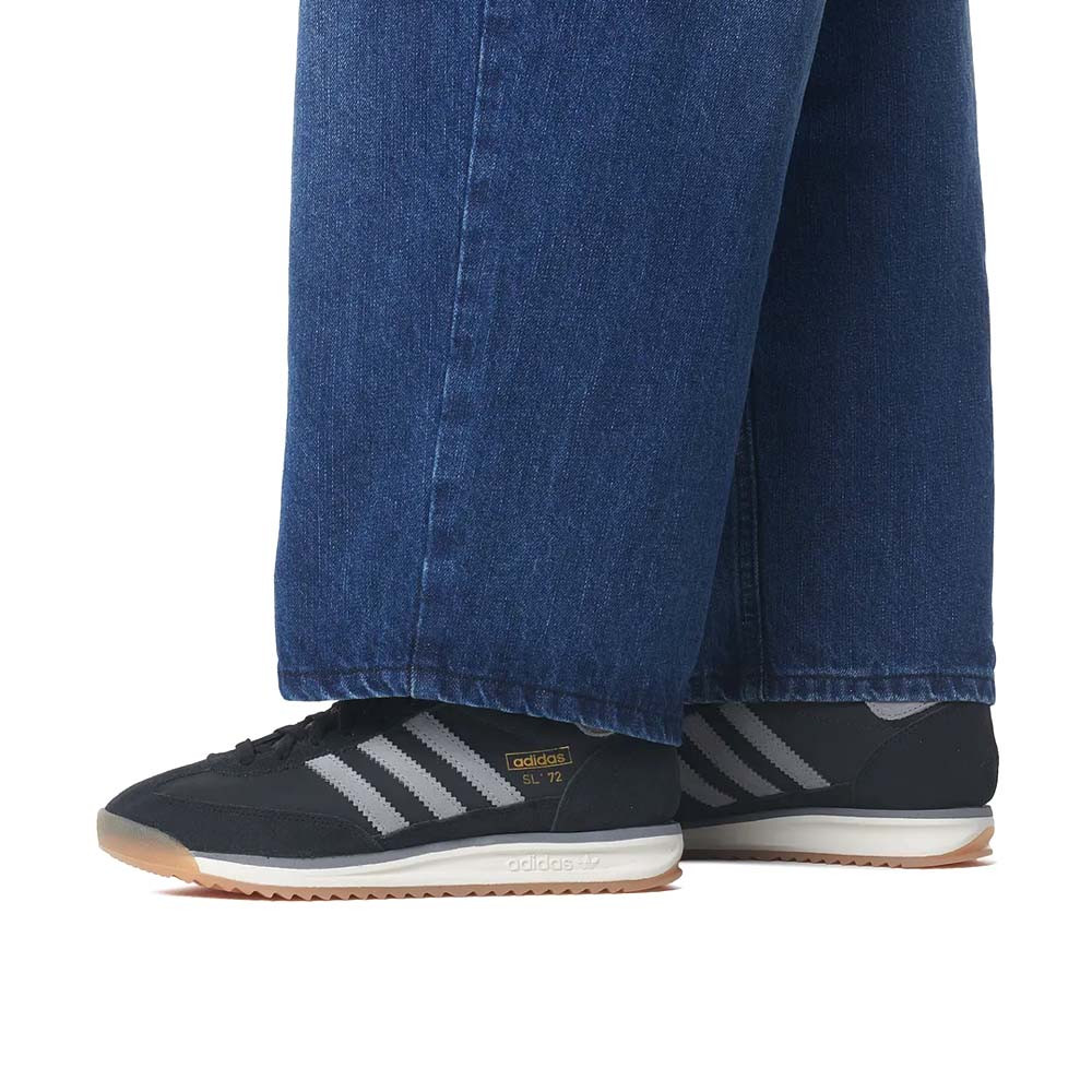 Az Adidas SL 72 RS Core Black felsőrésze könnyű nylonból és prémium velúrból készült, amely egyszerre biztosít légáteresztést, tartósságot és retró ihletésű stílust. A fekete alapszínhez párosított szürke és fehér részletek elegáns, mégis sportos megjelenést kölcsönöznek, miközben megőrzik a ’70-es évek klasszikus futócipő-hangulatát. A gondosan kidolgozott velúr panelek erősítik a cipő tartását, és egyedi textúrát adnak a modellnek.