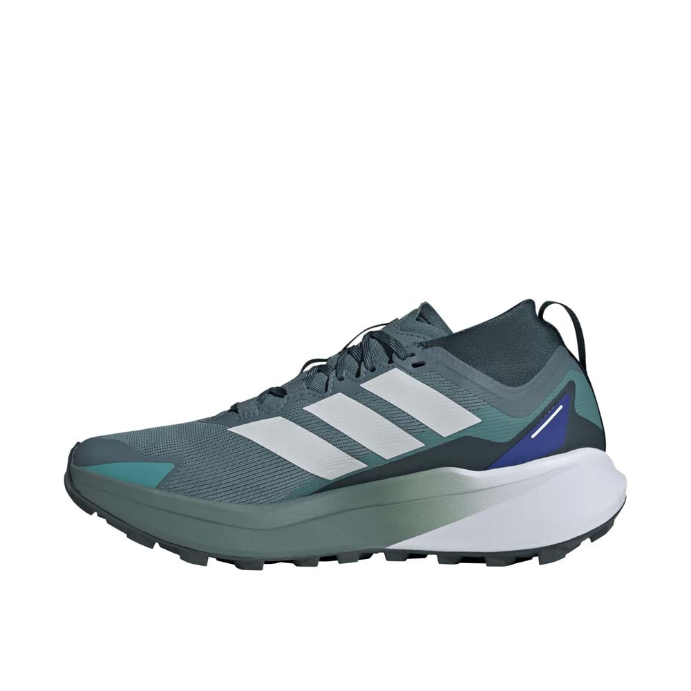 Az Adidas Terrex Agravic GORE-TEX Trail Teal Cloud felsőrésze könnyű, strapabíró mesh anyagból készült, amely biztosítja a megfelelő szellőzést és az extra tartósságot. A GORE-TEX Invisible Fit membrán teljes vízállóságot kínál, miközben megőrzi a cipő rugalmasságát és kényelmét. A teal kék és fehér színkombináció modern, sportos megjelenést sugároz, amely tökéletesen illeszkedik a természetes és városi környezethez egyaránt.