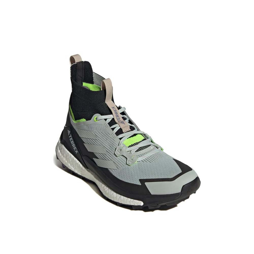 Az Adidas Terrex Free Hiker 2.0 Wonder Silver felsőrésze tartós, légáteresztő meshből készült, amelyet stratégiai megerősítések egészítenek ki a nagyobb igénybevételnek kitett részeken. A Wonder Silver árnyalatot élénk citromsárga (Lucid Lemon) részletek dobják fel, amelyek friss, energikus megjelenést kölcsönöznek a cipőnek. A gondosan megválasztott anyagok egyszerre kínálnak könnyedséget és ellenállóságot, így a modell hosszú távon is megbízható társ marad.