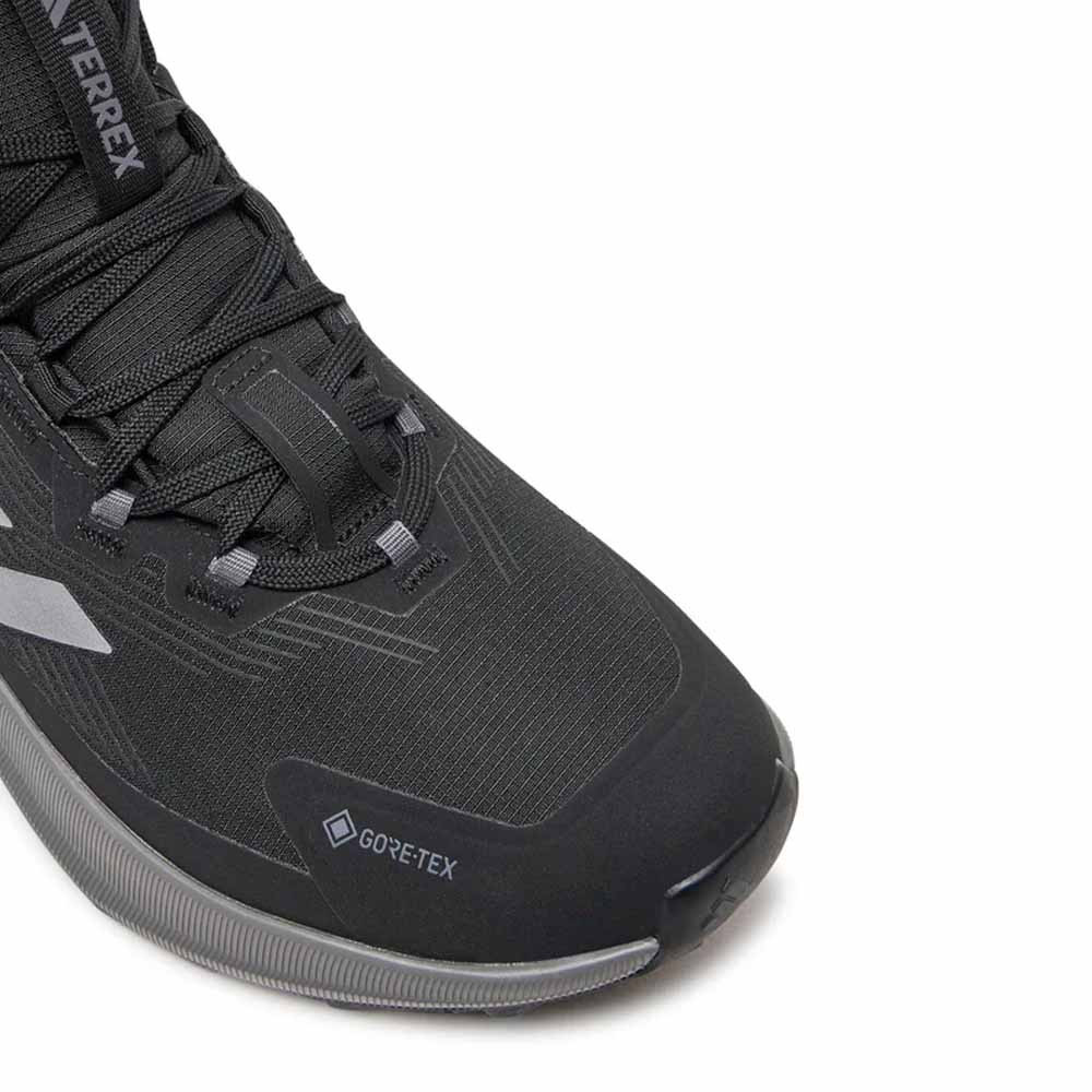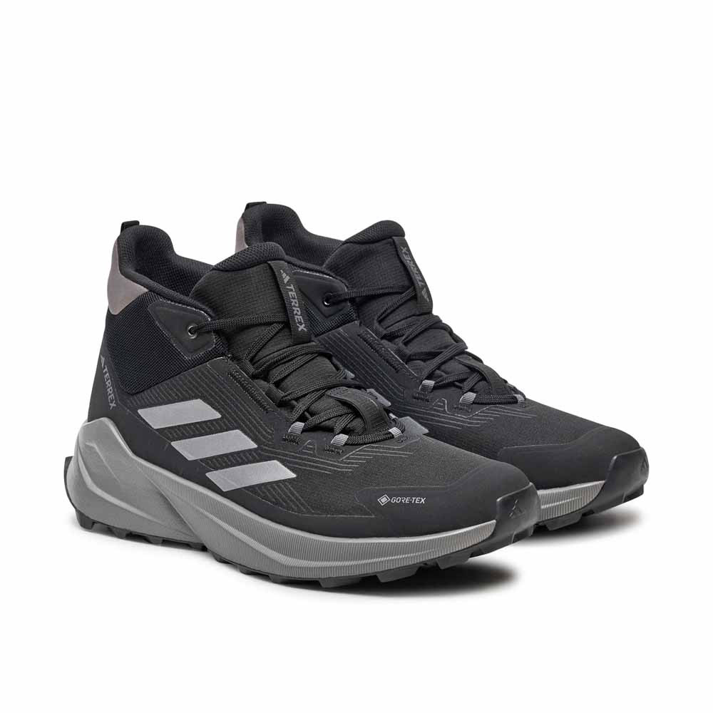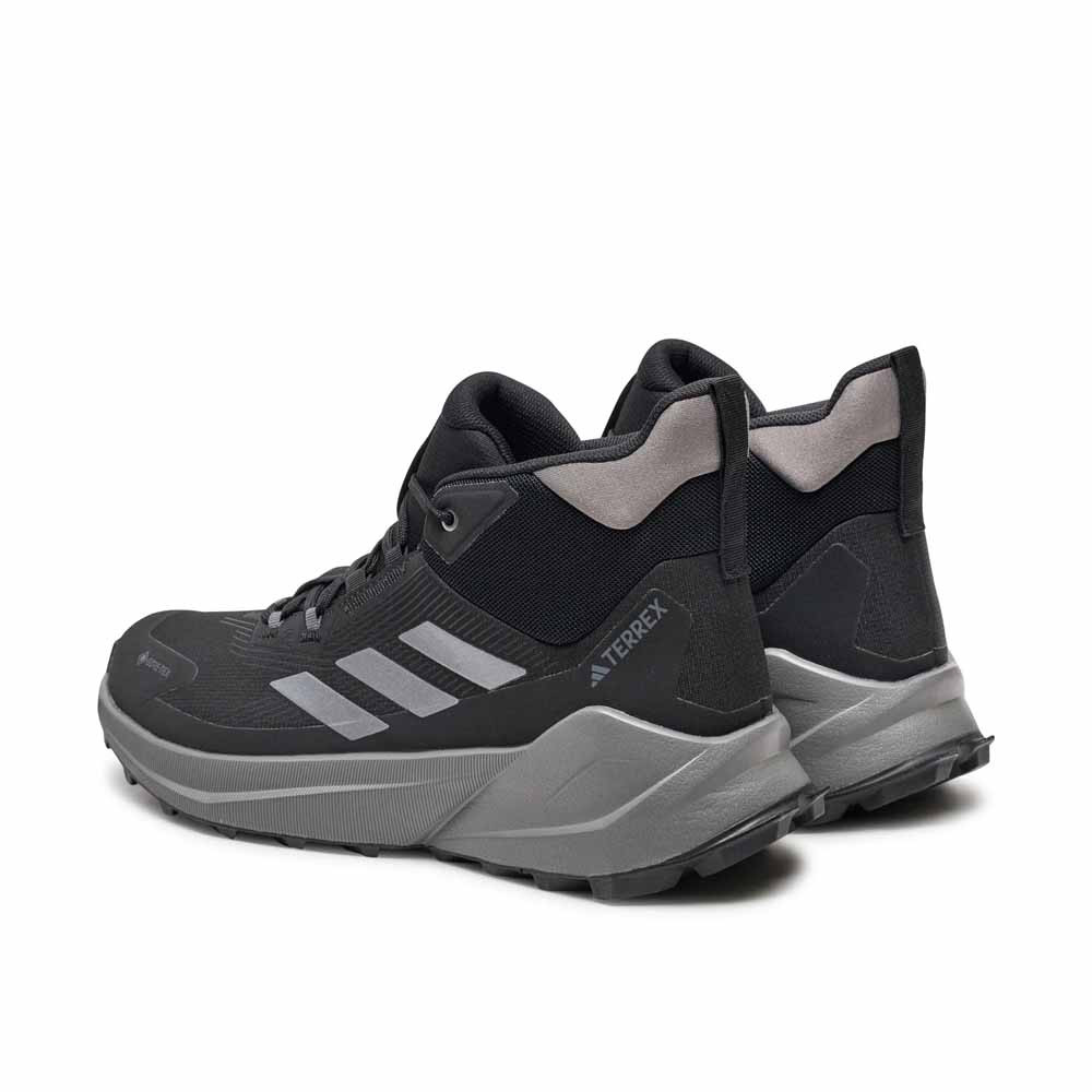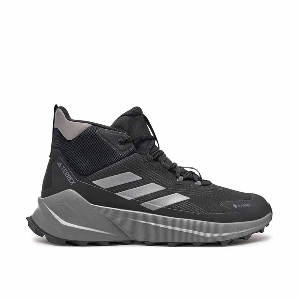 A modell letisztult Core Black színállása a Terrex vonal funkcionalitását a városi viseletek visszafogott esztétikájával ötvözi. A textil és szintetikus felsőrész modern, varrat nélküli kialakítást kapott, amely egyszerre könnyíti a cipőt és növeli a tartósságát. A középmagas sziluett stabil tartást ad a boka körül, miközben nem válik merevvé vagy kényelmetlenné hosszabb séták során sem. Ennek köszönhetően természetes módon illeszkedik a hétköznapi outfitekbe és a könnyebb túrázási helyzetekbe is.