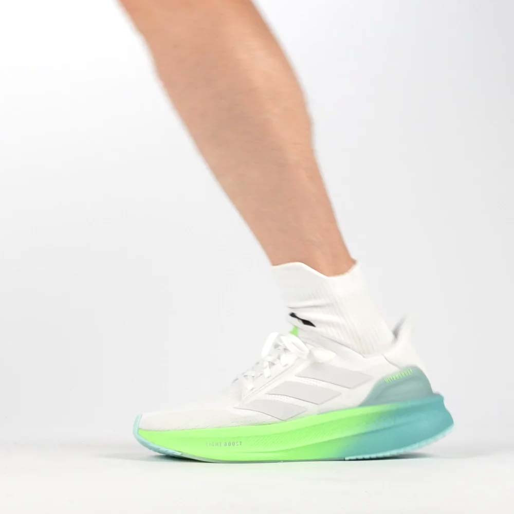 Az Adidas Ultra Boost 5X Cloud White a modern teljesítményt és a letisztult stílust egyesíti. A rugalmas Primeknit felsőrész könnyű és légáteresztő, így természetesen idomul a lábhoz, míg a továbbfejlesztett LightBOOST V2 középtalp extra energia-visszaadást és puha párnázást biztosít minden lépésnél. A Torsion System stabilitást nyújt, a tartós gumitalp pedig megbízható tapadást garantál. A Cloud White / Dash Grey / Lime Burst színkombináció friss és sportos megjelenést kölcsönöz. Tökéletes választás azoknak, akik prémium kényelmet, innovációt és stílusos megjelenést keresnek egyetlen cipőben.
