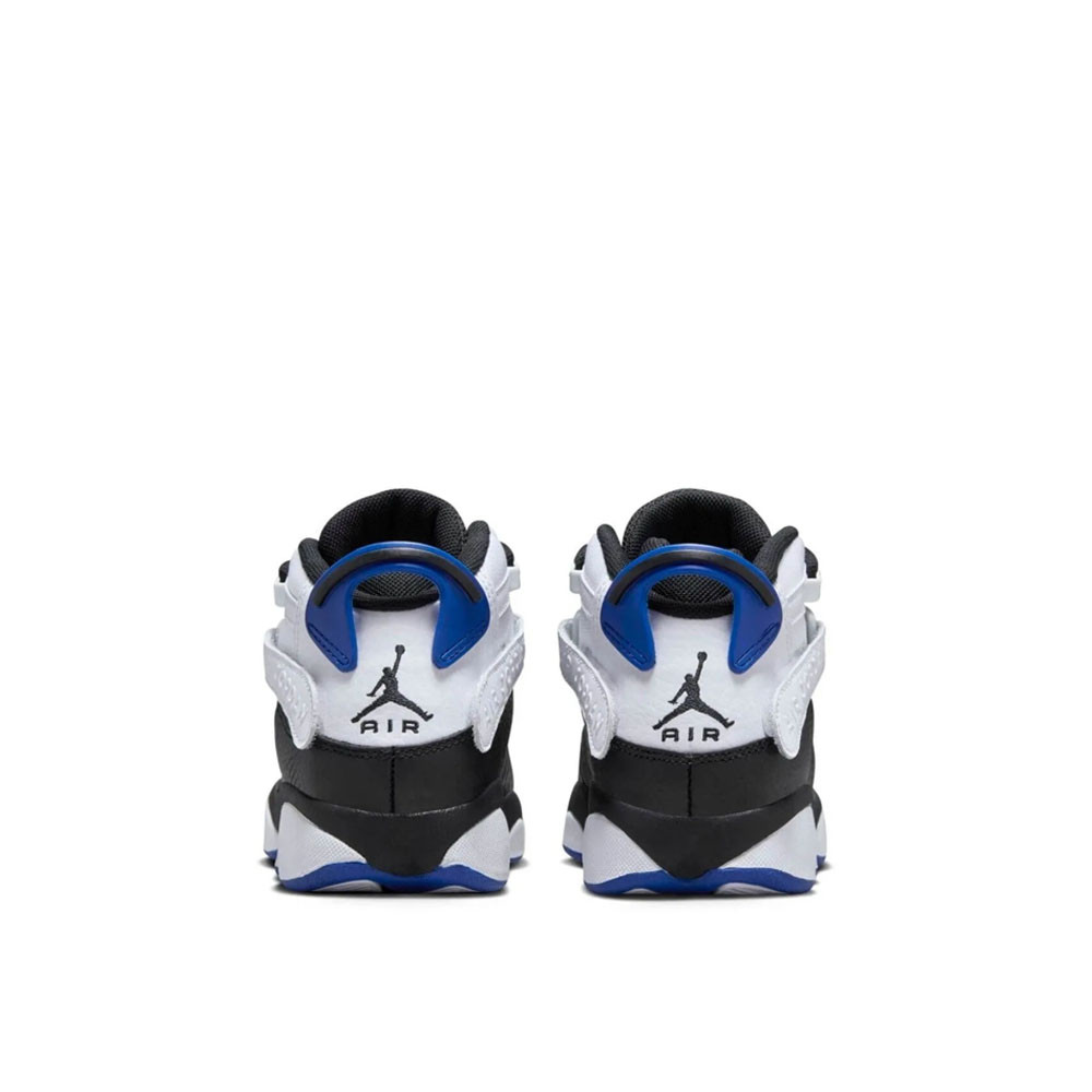 A fehér-fekete alapszínt kiemelő kék részletek időtálló és sokoldalú megjelenést kínálnak. Ez a színvilág könnyedén illeszkedik sportos és casual öltözékekhez, így a Jordan 6 Rings egyszerre utcai viseletként és kosárlabda-inspirált sneakerként is megállja a helyét.