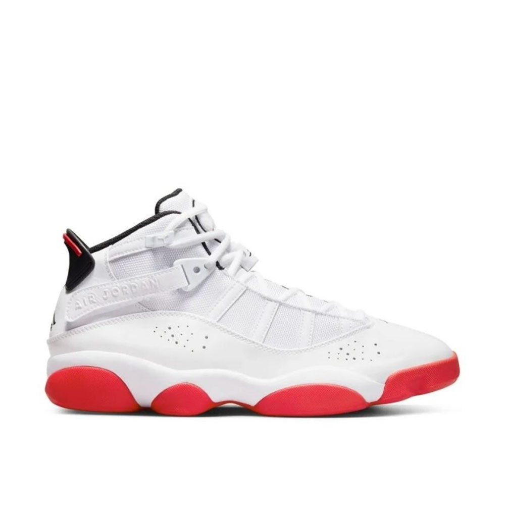 A Jordan 6 Rings White University Red a Jordan örökség ikonikus darabja, amely Michael Jordan hat bajnoki címének emlékét idézi. A prémium bőr felsőrész klasszikus fehér alapon, fekete és élénk piros részletekkel nyújt sportos, mégis elegáns megjelenést. A Zoom Air párnázás könnyed, rugalmas lépéseket biztosít, míg a masszív gumitalp stabil tapadást ad minden helyzetben. Tökéletes választás azoknak, akik időtálló stílust és teljesítményt keresnek egy sneakerben.