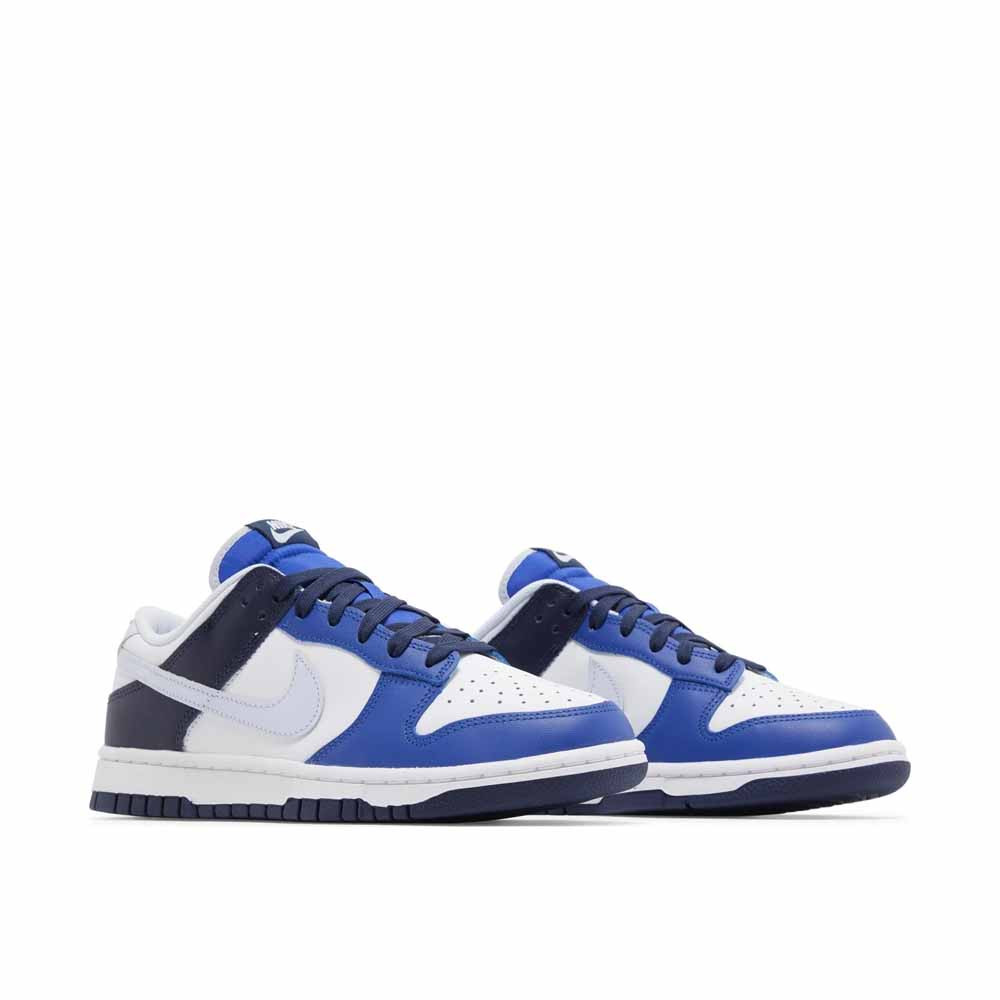 A Nike Dunk Low Game Royal Navy férfi utcai cipő a klasszikus kosárlabda-ihletésű forma és az időtálló kék-fehér színblokkolás találkozása. A prémium bőr felsőrész tartós és egységes megjelenést ad, miközben kényelmes viseletet biztosít a mindennapokban. A párnázott gallér és a hab középtalp alap csillapítást nyújt városi használat során, a gumi külső talp pedig stabil tapadást ad különböző felületeken. A modell könnyen illeszkedik casual és streetwear öltözékhez, így sokoldalú választás mindennapi viseletre.