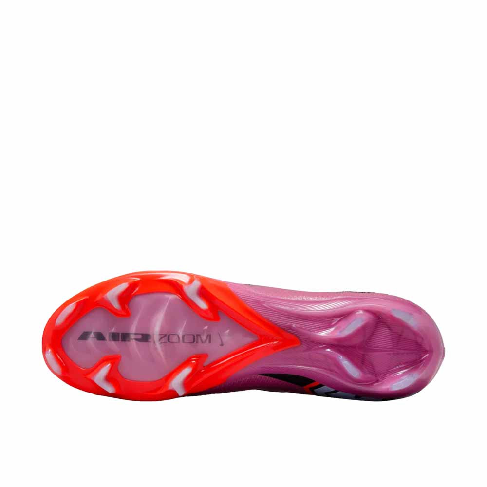 A Nike Mercurial Superfly 10 Elite FG Mad Voltage Scary Good Pack egy elit szintű gumi stoplis focicipő, amelyet robbanékonyságra és maximális sebességre terveztek. A Gripknit felsőrész precíz labdaérintést biztosít nagy tempónál is, míg a Dynamic Fit gallér stabilan körülöleli a bokát. A talplemezbe épített Zoom Air egység energikus elrugaszkodást támogat, a speciálisan kialakított FG stoplirendszer pedig természetes füves pályán segíti a gyors irányváltásokat. A Mad Voltage dizájn intenzív megjelenést ad a pályán.