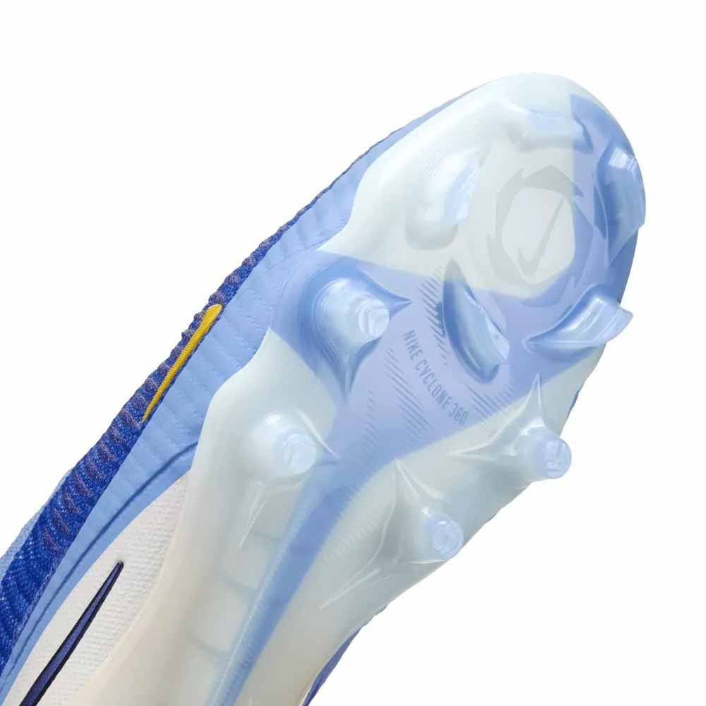 A robbanékony irányváltásokhoz elengedhetetlen a megfelelő talpkialakítás, ezért ez a gumi stoplis focicipő a Nike legújabb Cyclone 360 tapadási mintázatával készült. A stoplik elrendezése lehetővé teszi a gyors, körkörös mozdulatokat, miközben stabil alapot biztosít a sprintek indításakor. Ez a megoldás csökkenti a talajjal való érintkezés során fellépő rotációs ellenállást, ami nemcsak gyorsabbá teszi a játékost, hanem segít megóvni az ízületeket is a hirtelen terheléstől. A természetes fűre optimalizált FG stoplik mélyen belekapaszkodnak a talajba, garantálva a magabiztos elindulást.