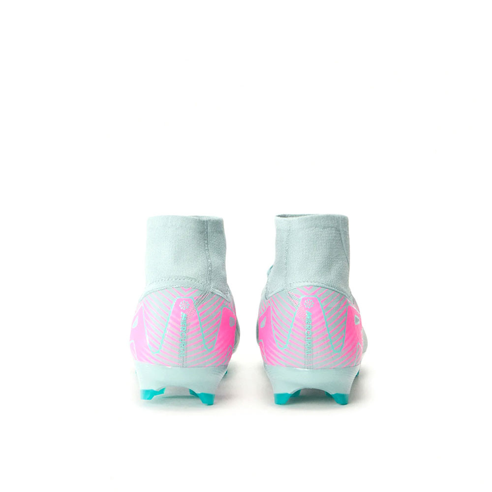 A Nike Zoom Mercurial Superfly 10 Pro FG felsőrésze Flyknit technológiával készült, amely könnyű, rugalmas és légáteresztő anyagot biztosít. A szoros illeszkedés és a láb formájához alkalmazkodó kialakítás közvetlen kapcsolatot teremt a labdával, így a precíz irányítást és gyors mozgást maximálisan támogatja. A cipő modern Prism Pack dizájnja nemcsak stílusos, hanem a sebességet és dinamizmust is hangsúlyozza.
