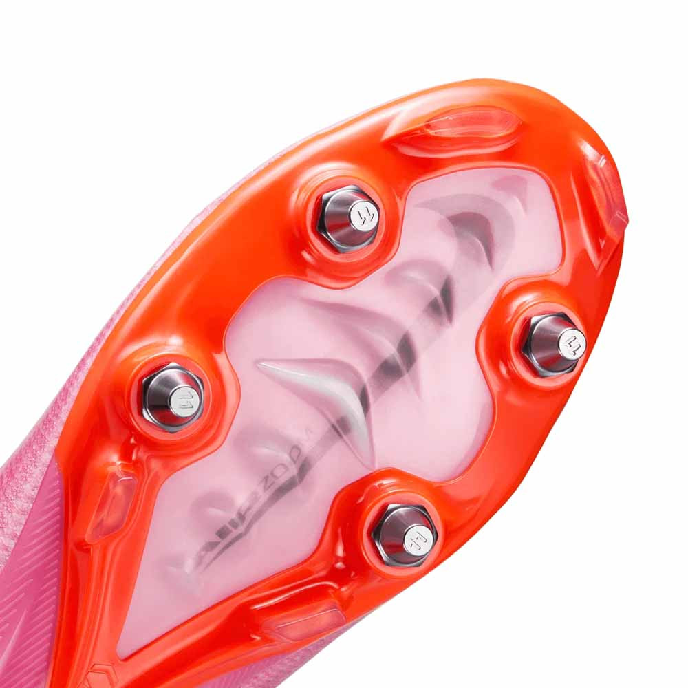 A Soft Ground konfiguráció kifejezetten a mély és sáros talajra lett kifejlesztve, ahol a hagyományos stoplik már nem elegendőek. A talpon cserélhető fém stoplik és rögzített gumi stoplik vegyesen helyezkednek el, hogy minden irányban tökéletes tapadást biztosítsanak. A fém stoplik mélyen behatolnak a puha földbe, megakadályozva a megcsúszást az elindulásnál vagy a megállásnál. A talplemez anyaga rendkívül merev és ellenálló, ami hatékony energiaátvitelt tesz lehetővé minden lépésnél, ugyanakkor elég rugalmas ahhoz, hogy kövesse a lábfej természetes hajlását. Ez a professzionális technikai háttér teszi lehetővé, hogy a játékos a legrosszabb körülmények között is a maximumot hozza ki sebességéből.